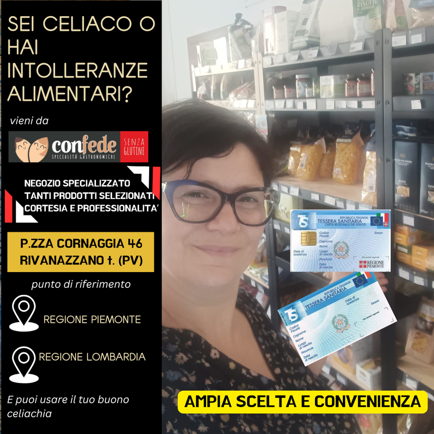 Troverai le delizie di Con Fede senza glutine a Rivanazzano terme (PV) nel punto vendita in P.zza Cornaggia 46.